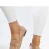Beige Areebah moccasins are modern and elegant footwear that is sure to attract attention. Their square toe and buckle adorned with rhinestones give them a unique character. The comfortable slip-on design makes them perfect for everyday wear. Made from high-quality eco-friendly leather, these low moccasins feature a unique design that will help you stand out from the crowd. They are perfect for spring and summer, and the black sole adds a touch of elegance. Ideal footwear for those who value a fashionable look and everyday comfort.
