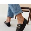 Black loafers with a buckle from Comerio are a perfect choice for summer days. Their almond toe provides comfort and breathability, and the slip-on style makes it easy to put on and take off shoes. Made of durable synthetic material, they are light and comfortable. Their modern design perfectly complements various stylizations, making them a hit this season. These flat, contemporary, and low loafers fit perfectly with the latest trends. Perfect for summer!