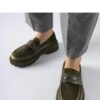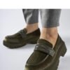 Green moccasins adorned with zircons Longuelo are the perfect shoes for those who value both comfort and elegance. The shoes have a medium heel that provides proper support for the foot without burdening it too much. Made of rubber, they are resistant to weather conditions, which allows them to be worn on rainy days as well as in sunny weather.