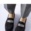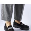 Black moccasins made of eco-suede Nicholls are a stylish addition to summer wardrobe. Adorned with zircons, these shoes are not only fashionable, but also comfortable. Low heel made of rubber provides stability, and a round toe adds elegance. Perfect for warm days, these lightweight and breathable moccasins are an excellent choice for summer walks or meetings with friends. Made of high-quality eco-friendly leather, these shoes are not only fashionable, but also environmentally friendly. Perfect for summer!