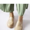 Beige elegant Puccianiello moccasins are a perfect choice for summer days. Their slip-on design makes them easy to put on and take off, which is very practical during hot days. The low profile provides comfort and freedom of movement, and the breathable rubber material allows feet to breathe even on the hottest days. Careful stitching adds elegance to them, and the round toe adds delicacy and charm. The green color perfectly complements summer outfits, matching both jeans and dresses or skirts. These moccasins are a must-have for fashionable women who value comfort, durability, and style. Ideal for the younger generation who focus on trends and stylish shoes. The outer material is synthetic leather, the sole is made of rubber, and the closure is slip-on. A perfect choice for summer days!