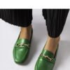 Green decorative moccasins by Docherty are a perfect choice for summer days. Made of rubber, they provide comfort and breathability for the feet. Their low cut makes them lightweight and comfortable to wear. Dedicated to stylish women who appreciate fashionable footwear, these moccasins have a trendy design that attracts attention and adds character to any outfit. Thanks to the slip-on construction, they are easy to put on and take off. The square toe gives them a unique look and makes them even more attractive. The outer material is suede-like eco-leather, and the sole is made of beige rubber. Perfect for the summer collection!