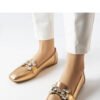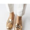 Elegant pink and gold moccasins with zircons from the Marechal brand are the perfect choice for summer. Made of high-quality synthetic leather, they provide comfort and durability. The moccasins have a slip-on closure, making them easy to put on and take off. The sole is made of brown synthetic material. Perfect shoes for elegant and casual styles on warm days.