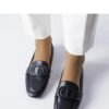 Black Poissonnier loafers with a buckle are elegant and stylish footwear that will work great for everyday wear as well as for more formal occasions. Made of high-quality synthetic leather, they have a rounded toe and characteristic stitching at the front. An additional decorative element is a plastic buckle that adds elegance to the shoes. The interior of the loafers is lined with soft synthetic leather with built-in foam, providing comfort when wearing. The universal black color makes them suitable for many outfits. Standard numbering, so it is worth suggesting your size when choosing. Perfect for people with narrow feet. Excellent for summer.