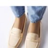 Beige Meilleur loafers made of eco-suede are the perfect choice for women who appreciate elegance and comfort. Made of high-quality ecological suede leather, they are characterized by flexibility and durability. The minimalist design adds elegance to them, and the universal beige color makes them perfect for many stylizations. Loafers have standard sizing, so it is worth following your size when purchasing. Perfect for summer, slip-on closure makes them easy to put on. The sole is made of beige synthetic material.