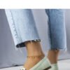 Green moccasins with a gold decoration Regina are elegant and comfortable footwear for women who value style and comfort. Made of high-quality synthetic leather, they are characterized by flexibility and durability. The metal decoration adds elegance to them, and the universal green color makes them suitable for many stylizations. Moccasins have standard numbering, so it is worth choosing your size. Ideal for summer, with slip-on style and beige rubber sole.