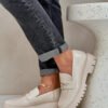Women’s loafers made of eco-leather are a comfortable choice that combines elegance with an original accent. Rounded toes provide comfort, and the model stands out with a charming teddy bear-shaped pin on the front strap, adding a fun and unique character. This is a great proposal for casual stylizations that need a touch of delicacy and freshness.