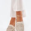 Women’s moccasins made of eco-leather, which combine lightness with comfort. Set on a delicate platform, they add subtle height, and the rounded toes give a feminine charm. The leather insole provides comfort throughout the day. Perfect for everyday wear, these moccasins will be an excellent choice for many outfits, combining elegance with functionality.