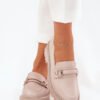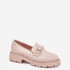 Stylish moccasins made of eco leather. The strap with a decoration at the front adds a unique character, and the rounded toes provide comfort throughout the day. There are decorations with zircons on the sole, which add shine. Perfect for everyday wear, these moccasins go well with various stylizations.