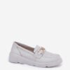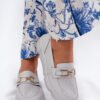 Women’s moccasins made of natural leather, set on a delicate wedge, combine elegance with comfort. Rounded toes provide comfort throughout the day, and a subtle gold ornament at the front adds a unique character to the shoes. The leather insole ensures proper cushioning, providing comfort with every step. These moccasins will be a perfect choice for everyday wear, perfectly matching both elegant and casual stylings.