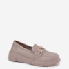 Women’s moccasins made of natural leather, set on a delicate wedge, combine elegance with comfort. Rounded toes provide comfort throughout the day, and a subtle gold decoration at the front adds a unique character to the shoes. The leather insole ensures proper cushioning, providing comfort with every step. These moccasins will be a perfect choice for everyday wear, fitting perfectly with both elegant and casual stylings.