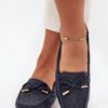 Women’s moccasins made of eco-leather, decorated with a lace pattern, are a perfect proposal for spring and summer. At the front, there is a bow tie that adds subtlety and charm. The soft insole provides comfort throughout the day, and the rounded toes guarantee comfort. Perfect for casual stylizations, they go great with dresses, skirts, and pants, bringing lightness and elegance to every outfit.