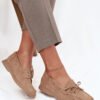 Women’s loafers made of soft eco suede are a comfortable and stylish choice for everyday wear. Set on a flat sole, they guarantee comfort, while rounded toes give them a classic character. A subtle strap at the front and around the ankle is an interesting detail that emphasizes the elegant and timeless look of this model. Perfect for everyday styling.