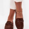 Women’s moccasins made of eco suede are a classic proposal in an elegant edition. Set on a flat heel, they provide comfort during everyday wear. The decorative detail placed at the front adds a stylish character to the whole. These are universal shoes that will work great both at work and in casual everyday stylizations.