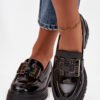 Women’s loafers made of patent eco-leather are a stylish proposal for women who appreciate elegance in their everyday outfits. The shiny finish gives them a unique character, and the decorative detail on the front of the shoe is an eye-catching accent. The classic design ensures comfort and versatility, making loafers perfect for both work and social gatherings or nights out in the city.