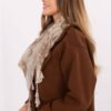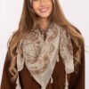 A scarf with an interesting print and fringes is a fashionable and versatile accessory that will add character to any outfit. The eye-catching pattern attracts attention and enlivens both simple and more classic ensembles. The square format with dimensions of 110 × 110 cm allows for versatile styling of the scarf in many ways – worn around the neck, shoulders, as a shawl or as an accessory to a handbag. The fringed finish gives it lightness and a subtle, boho character, making it the perfect choice for everyday wear as well as special occasions.