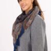 Scarf with an interesting print and fringes is a fashionable and versatile accessory that will add character to any outfit. The eye-catching pattern attracts attention and livens up both simple and more classic sets. The square format with dimensions of 110 × 110 cm allows for freely styling the scarf in many ways – worn around the neck, on the shoulders, as a shawl or as an addition to a handbag. Fringed finish gives it lightness and subtle, boho character, making it a perfect choice for everyday and special occasions.