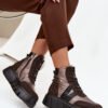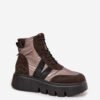 Women’s ankle boots by Vinceza are a fashionable proposal for colder days. Made of a combination of eco suede and slippery material, they present a modern look that attracts attention. Set on a solid platform, they provide comfort and stability when worn. The model combines lacing with a zipper closure, making it easier to put on and adjust to the foot. The interior lined with a shoe blanket guarantees warmth and comfort, making the shoes perfect for the autumn-winter season.