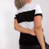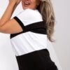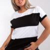 Plus size blouse with short sleeves and round neckline. The blouse is made of fabric with wide stripes.
