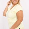 Women’s plus size casual blouse is an ideal proposition for everyday wear, as well as for work. Made of pleasant to the touch cotton with elastane addition, it provides comfort and excellent fit to the silhouette. Standard length model, with short sleeves and a feminine V-neckline, which subtly emphasizes the neck. The attention is drawn to the spectacular application on the front in the shape of hearts adorned with sparkling zircons, adding an elegant and delicate charm to the blouse. Great for everyday styling, it will work well with jeans as well as more classic trousers or a skirt. Universal, comfortable and with character, ideal for work and for more casual meetings.