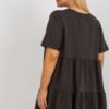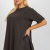 Extended casual blouse, perfect for everyday occasions. Made of pleasant to the touch cotton with elastane, making it soft, elastic and comfortable to wear all day. The smooth pattern makes the blouse easy to match with many stylings. The model has a round neckline and short sleeves, giving it a universal, relaxed character. The lack of fastening emphasizes the simple, comfortable form. An additional advantage is the frill at the bottom at the back, which subtly enlivens the cut and adds a feminine charm. An ideal proposition for everyday wear with jeans, leggings or a skirt.