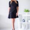 Dress with fitted top, with decorative frill at bottom. Dress with elbow-length sleeves. Dress has a zip fastening.