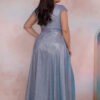 The elegant, shimmering blue dress with a pink rose is a perfect choice for special occasions. Made of delicately shimmering material, it gives the styling a subtle glow and a luxurious look. The V-neckline beautifully accentuates the bust, while the waist tie shapes the silhouette, emphasizing its assets. The flared bottom with a striking slit adds lightness and sensuality to the dress. The model is fastened with a hidden zipper, ensuring comfort and perfect fit to the figure. Ideal for weddings, balls, receptions, and other ceremonies.