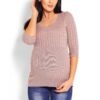 Sweater with a delicate weave. In the upper part of the braids. Sweater with 3/4 sleeves and a round neckline.