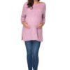 Loose-fitting sweater with long sleeves. The sweater has slits at the sides.