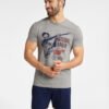 FLAIR men’s cotton pajamas in sporty style are an option for any activity lover. The set includes a gray T-shirt and navy blue short shorts. The T-shirt features a baseball player print. The FLAIR two-piece men’s set is not only pajamas, but also a casual outfit and a comfortable set for running or the gym. The T-shirt and shorts are made of cotton with a blend of viscose, which will keep you comfortable both while sleeping and moving.