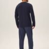 Hunt is a men’s pajama with long legs and sleeves, perfect for cooler nights. You are sure to appreciate its natural, pleasant to the touch, breathable material, cotton knit. The pajamas contain no artificial admixtures, yet they are stretchy and fit the figure well. It is a model in a versatile navy blue color, with black details.