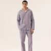 Stylish and comfortable men’s pajamas with a loose fit, ensuring comfort during sleep and relaxation. Made of soft material with a print, it perfectly fits the silhouette. The long-sleeved shirt is buttoned, has a classic collar, and a practical pocket at chest height. The long-legged pants are equipped with an elastic waistband and adjustable drawstrings for an even better fit. Additional pockets increase the functionality of the set. This is an ideal proposal for men who appreciate style and comfort.