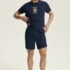 Comfortable women’s pajamas with a loose fit, perfect for sleeping and relaxing at home. The t-shirt with short sleeves, a round neckline, and a print adds a fashionable, casual character to the whole. The shorts without pockets provide comfort, and the wide elastic waistband with drawstrings allows you to perfectly adjust the pajamas to your silhouette. The set is packed in a box, making it also suitable as a practical gift.