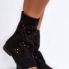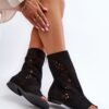 These unique flat-heeled sandals are a combination of elegance and comfort. Made of high quality natural suede, they provide durability and comfort. Their zippered upper is decorated with an openwork pattern, which gives them delicacy and style. They are perfect for both everyday and special occasions, adding a unique charm to your styling.