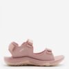 Women’s sandals in a sporty style from the 4F brand. This model features a triple hook-and-loop closure for a firm hold on the foot. The upper is made of synthetic material, lined with soft jersey. The EVA foam insole is a guarantee of exceptional comfort, and the outsole provides optimal grip on various types of ground, making these sandals an ideal choice for summer walks, hikes or outdoor recreational activities.