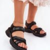 Stylish women’s sandals made of textile material. Decorated with sequins that give them a unique shine. Fastened with Velcro, which ensures easy and quick adjustment to the foot. Perfect for summer days, these sandals combine comfort with a fashionable, shiny accent, perfect for pairing with dresses, skirts, or shorts.