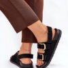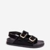 Sandals made of eco suede combine comfort with modern style. Thanks to the platform, they provide comfort and lightness when walking. The velcro closure allows for a perfect fit to the foot. This model is characterized by gold buckles, which add a unique charm to it. It is the perfect choice for summer days!
