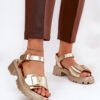 Elegant women’s sandals made of eco leather, set on a platform and flat heel, which provide comfort and stability. The front of the shoes is decorated with a large gold buckle, which adds subtle elegance and character to them. Fastened with an adjustable buckle strap, allowing for a perfect fit to the foot. These sandals are a perfect choice for warm days, suitable for both dresses and pants, combining style and comfort in every outfit.