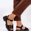 Elegant women’s sandals made of eco suede, set on a platform and flat heel, which provide comfort and stability. At the front, the shoes are decorated with a large gold buckle, adding subtle elegance and character to them. Fastened with an adjustable buckle strap, allowing for a perfect fit to the foot. These sandals are a perfect choice for warm days, suitable for both dresses and trousers, combining style and comfort in every outfit.
