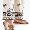 Women’s sandals from the Jezzi brand, made of high-quality eco leather. This model is characterized by a front decoration that adds unique character to them. Set on a flat heel, they provide comfort thanks to a soft insole. Fastened with an adjustable buckle strap. Perfect for various occasions and evening outings, they go well with both dresses and pants, emphasizing feminine elegance.