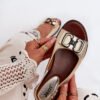 Women’s sandals by Jezzi. Made of high-quality eco leather. This model is distinguished by a decoration placed at the front, which adds a unique charm to them. Set on a flat heel. The soft insole will provide comfort with every step. Fastened with an adjustable buckle strap. Perfect for various occasions and evening outings, these sandals go well with both dresses and trousers, emphasizing a feminine style and elegance.