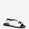Elegant eco leather sandals are a perfect choice for summer days, combining style and comfort. There is a decoration at the front of the shoes that adds a unique charm to them. Set on a flat heel, they provide comfort throughout the day. Fastened with an adjustable buckle strap, they allow for a perfect fit. These sandals will be a perfect complement to dresses, skirts, and fabric pants, creating an elegant and fashionable look.