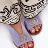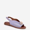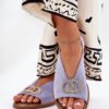 Eco suede women’s sandals are an elegant option for warm days. Set on a flat heel, they provide comfort and stability. Fastened with an adjustable strap and buckle, they allow for a perfect fit to the foot. There is a decoration at the front that adds subtle elegance, making them a great complement to both casual and more formal outfits.