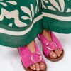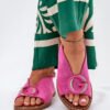 Flat women’s sandals are an excellent option for summer days. They feature an embellishment at the front that adds a subtle charm, and an adjustable strap with a buckle allows for a perfect fit to the foot. The eco-leather insole provides comfort throughout the day. These sandals combine style with functionality, making them a perfect addition to both casual and more elegant outfits.