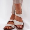 Women’s sandals made of natural leather. They are characterized by a flat heel and a buckle closure on an adjustable strap. The leather insole ensures comfortable wear, making them an excellent choice for hot days. The sole adorned with zircons adds a fashionable character. This model should be in your summer wardrobe!