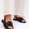 Shiny women’s sandals by S.Barski, made of eco leather, combining elegance with comfort. Set on a flat heel, they provide comfort throughout the day. Fastened with a buckle with an adjustable strap, allowing for a perfect fit to the foot. At the front, there is a decoration that gives the shoes a subtle charm. The Comfort Shoes insole guarantees comfort and proper cushioning. These elegant sandals will be a perfect choice for summer outings and formal occasions.