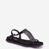 Elegant flat women’s sandals are a perfect choice for special occasions. Fastened with a buckle with an adjustable strap, they provide a perfect fit to the foot. The model is distinguished by a stylish strap decorated with crystals, which add elegance and shine to them. The soft, eco-leather insole guarantees comfort throughout the day. These sandals will be a perfect complement to elegant stylizations for ceremonies and evening outings.