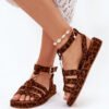 Women’s sandals made of eco suede. Set on a delicate platform, they provide comfort and stability throughout the day. Fastened with a buckle with an adjustable strap, they allow for a perfect fit to the foot. There is a subtle gold detail at the front that connects the straps. The soft insole provides comfort while walking. They go perfectly with both dresses and pants, creating a stylish look for any occasion.