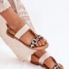 Flat women’s sandals adorned with beads, which delicately combine two straps, are an excellent choice for warm days. Fastened with a buckle, they provide a perfect fit to the foot. Perfect for summer styling, these sandals will match both dresses and trousers, adding lightness and charm to any outfit.