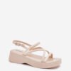 Women’s sandals made of rubber material, set on a platform. Thin straps give them a subtle, light character, making them an ideal choice for everyday wear. Perfect for casual outfits.
